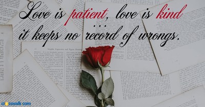 Love is patient, love is kind. It does not envy, it does not boast, it is not proud. It does not dishonor others, it is not self-seeking, it is not easily angered, it keeps no record of wrongs. - 1 Corinthians 13:4-5